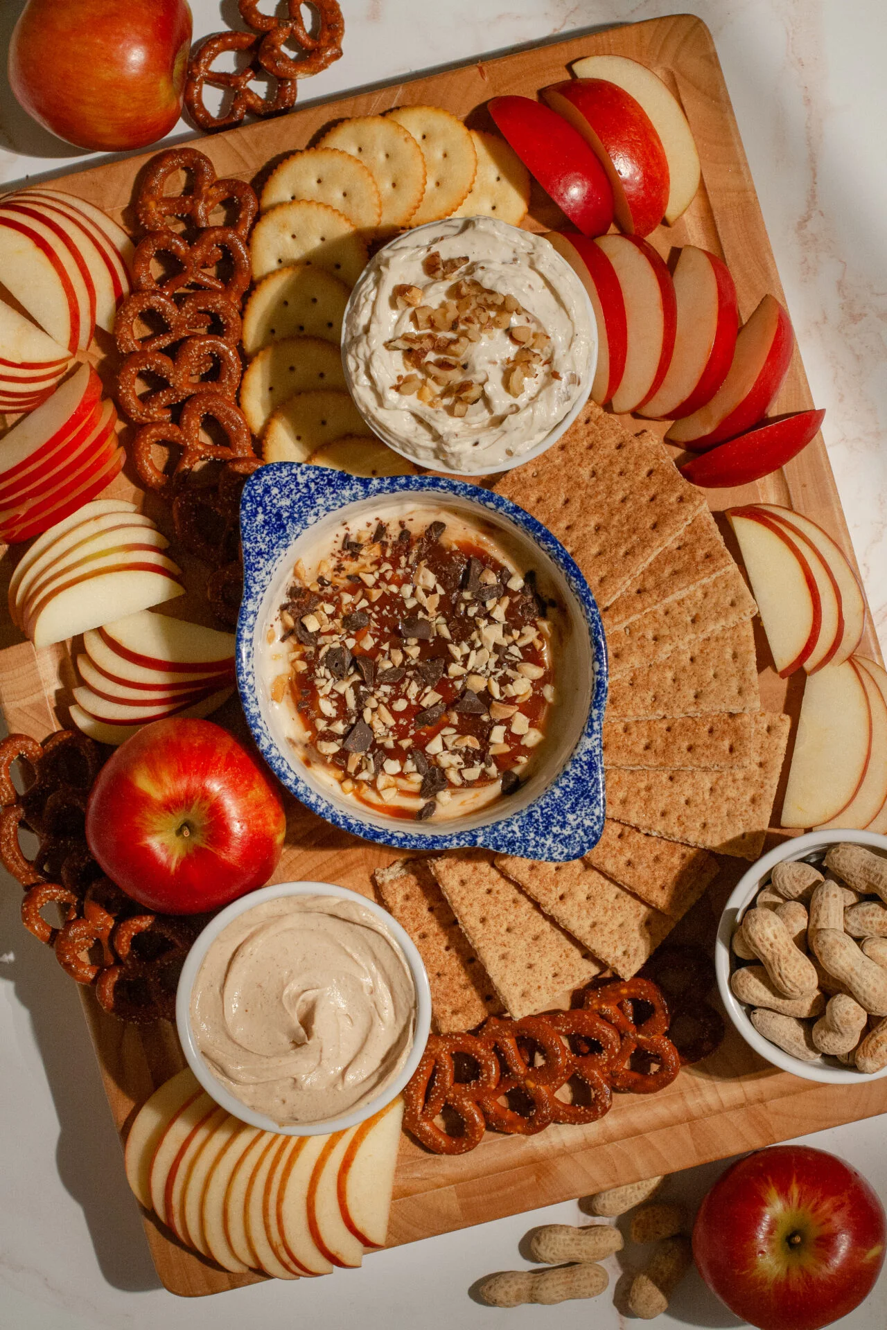Charcuterie Dips Board with Fresh Apples